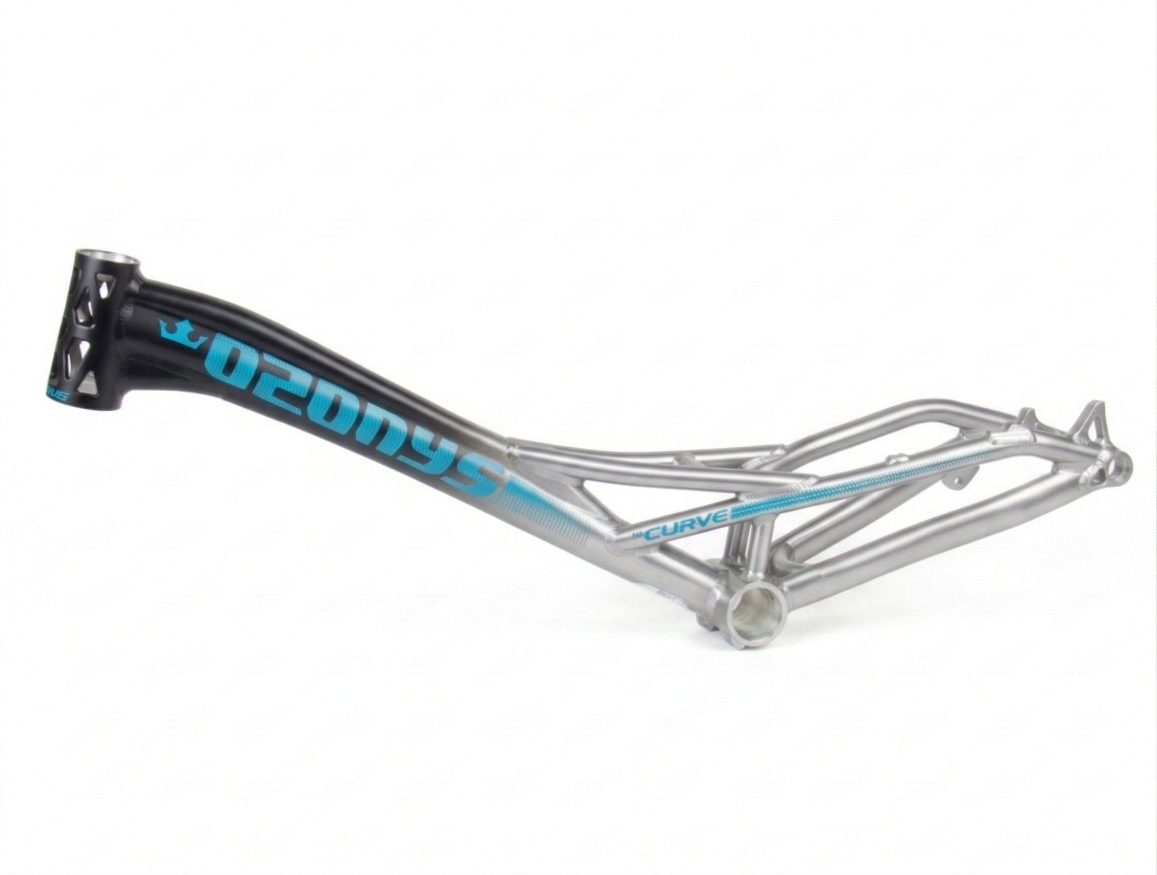 Le cadre est en aluminium hydroformé. Le choix de cette technologie avec ses propriétés élastiques, ses différences de formes et d’épaisseurs de matière, délivre un feeling de souplesse et de réactivité spécifique à la pratique du VTT Trial. Le style du Curve est aussi un générateur d’émotions via ses formes tout comme le choix de 3 couleurs possibles.