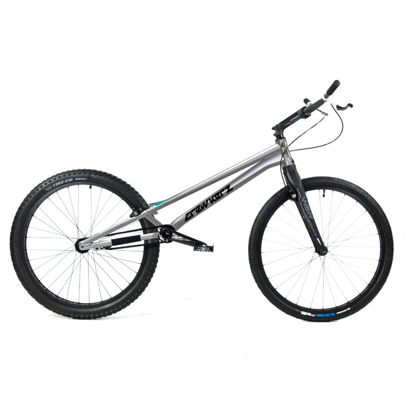 Ce vélo est doté de la déco exclusive des champions du monde, de la fourche carbone WAW Ultimate, des freins Trialtech Carthy Signature 2024 et du cintre carbone WAW Ultimate. Les roues sont équipées des jantes Hashtagg, qui permettent de gagner du poids et d’augmenter la surface et la puissance de freinage sur la version frein à patins.